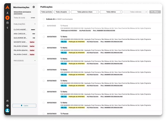 Ferramenta de Monitoramento Publicações, Movimentações Processuais